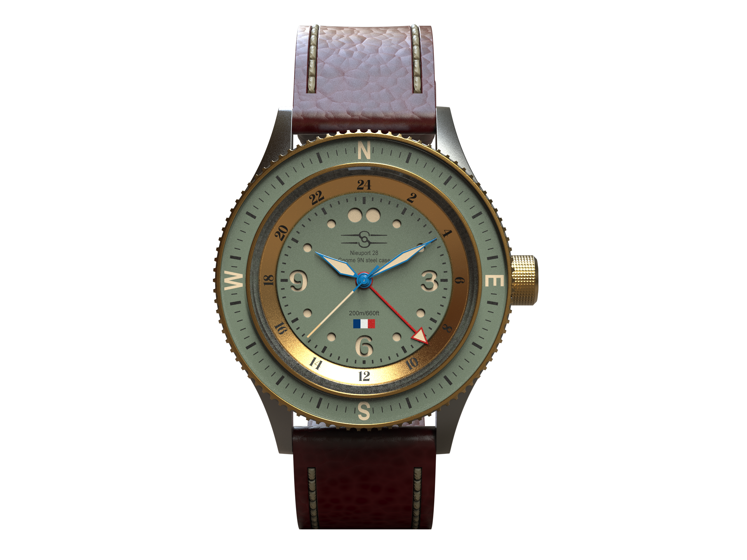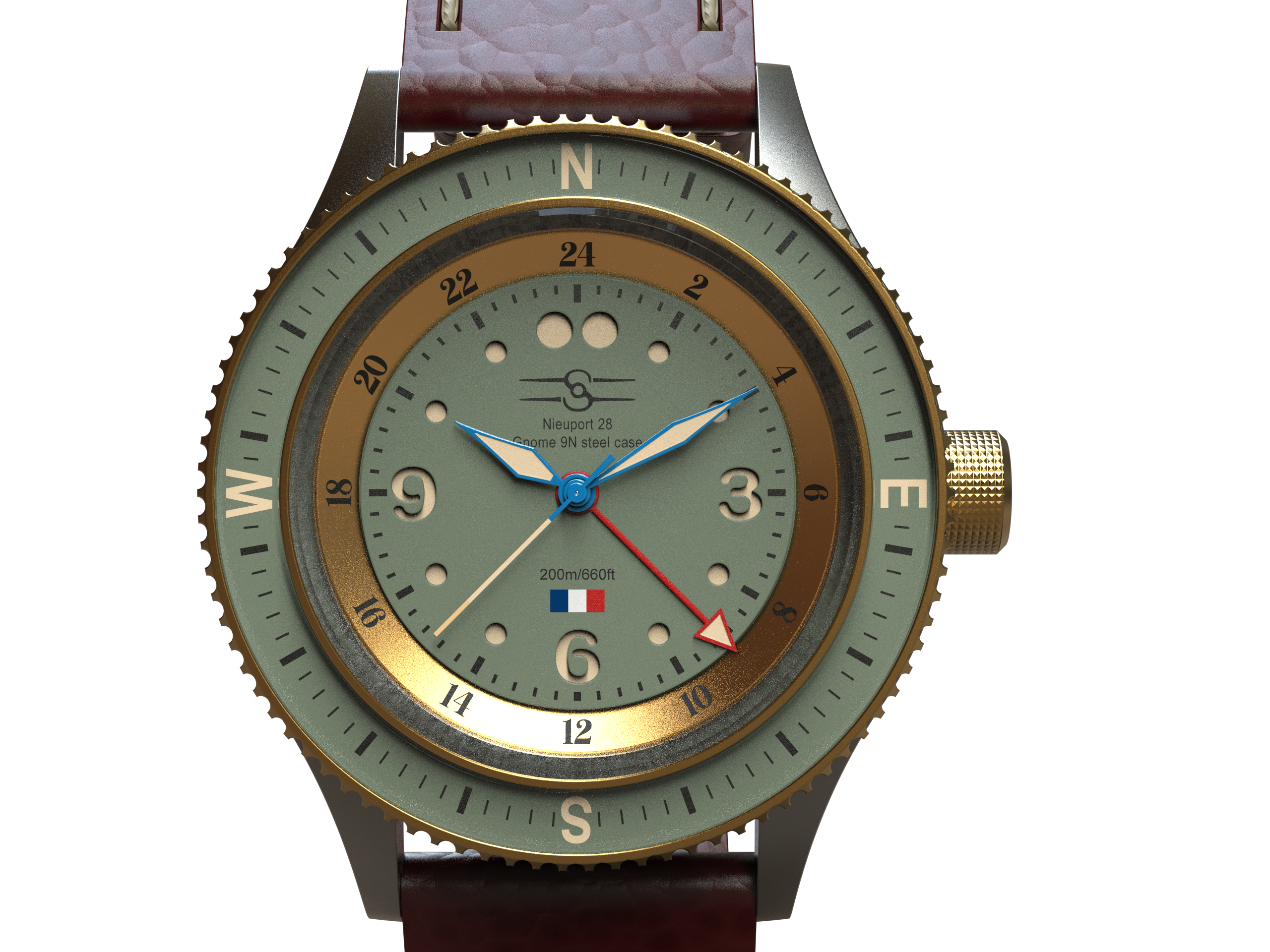 The elegant lines of the Nieuport 28 fighter airplane aren’t merely an inspiration for this limited edition of Sopwith’s Aero Marquis aviation timepiece. The entire watch case is crafted from an original 1918 Gnome Monosoupape 9N 160 horsepower airplane engine manufactured in France more than a century ago.